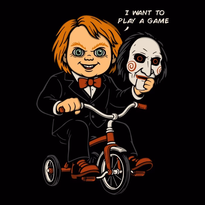 chuckys game shirtwoot está relacionado con: Child's Play, Chucky, Crossover, El Muñeco Diabólico, Jigsaw, Parodia, Saw