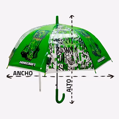 Un paraguas con diseño de Minecraft que convierte los días lluviosos en aventuras épicas, perfecto para los pequeños exploradores que construyen su mundo sin dejar que la lluvia los detenga. 💪
